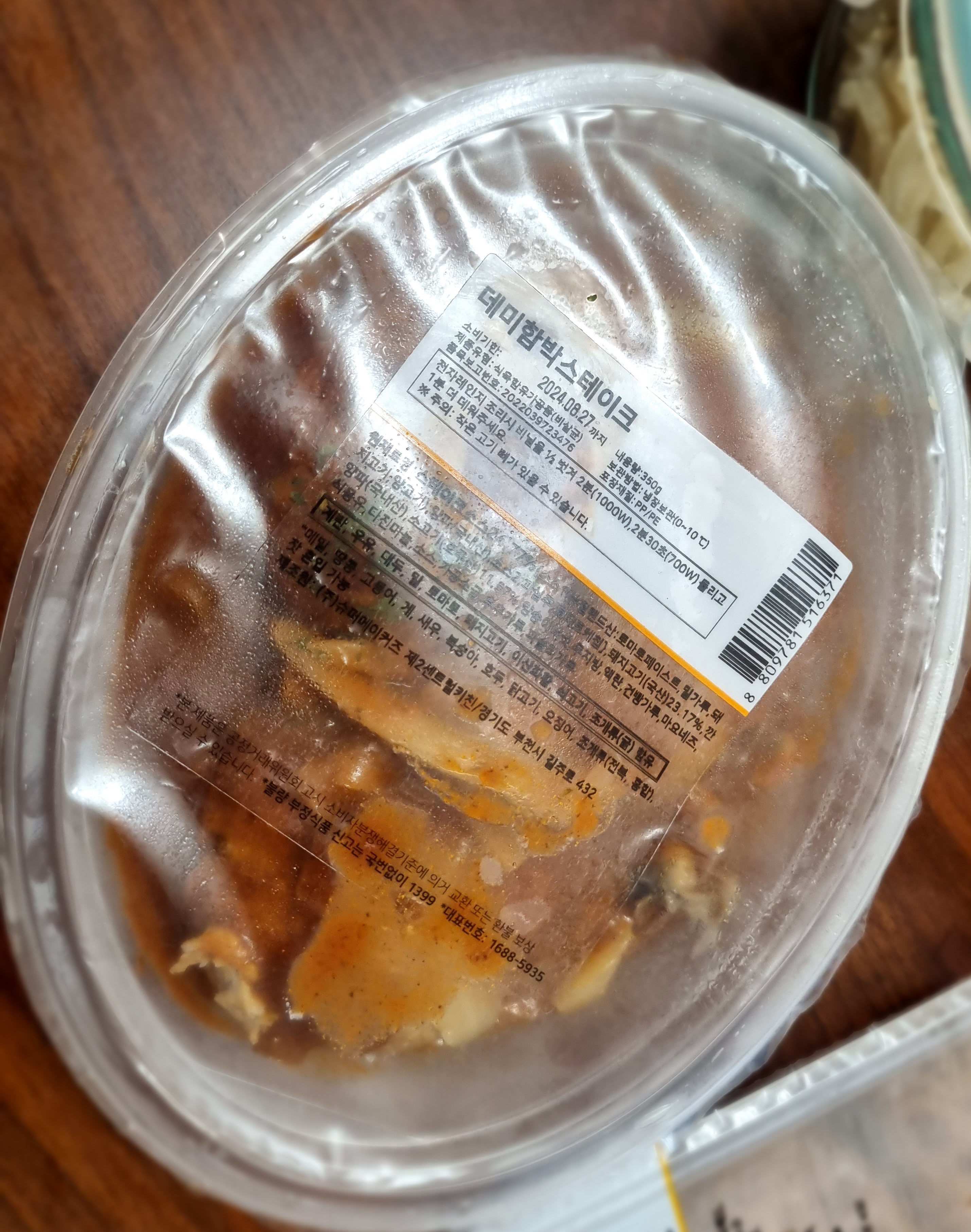 메인인 데미함박스테이크는 소스와 함께 고기 덩이가 세 개 들어 있습니다. 처음에는 양을 보고 너무 적은 것 같다는 생각이 들었는데요. 맛을 보니 굉장히 부드럽고 고기 냄새도 하나도 안나 결과적으로 매우 만족스러웠습니다. 이건 다음에도 꼭 주문할 생각입니다.