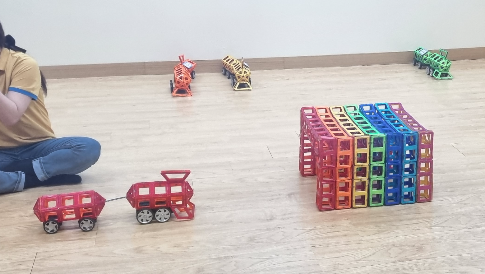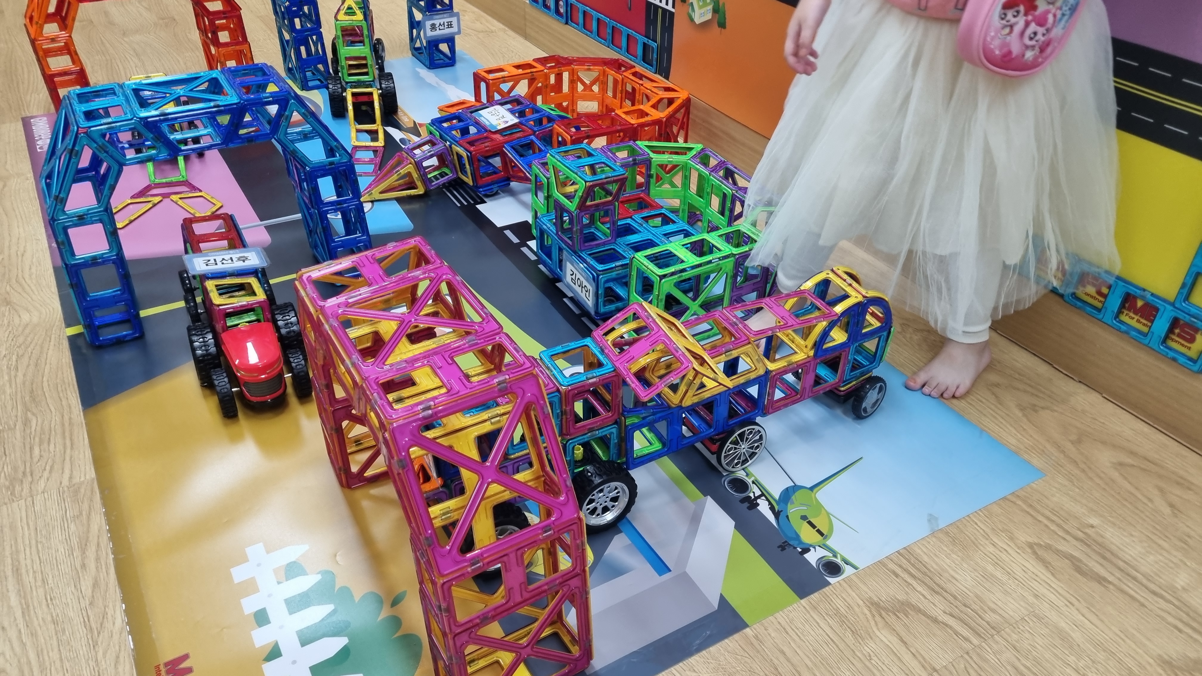 맥포머스 수업을 한 단계 더 높은 반으로 가니 정말 멋지고 큰 구조물들을 척척 만들어내게 되고 수업 내용도 더욱 재미있어집니다. 직접 자동차를 만들어 운전해보기도 하고 친구들과 힘을 합쳐 거대한 건물을 만들기도 합니다.