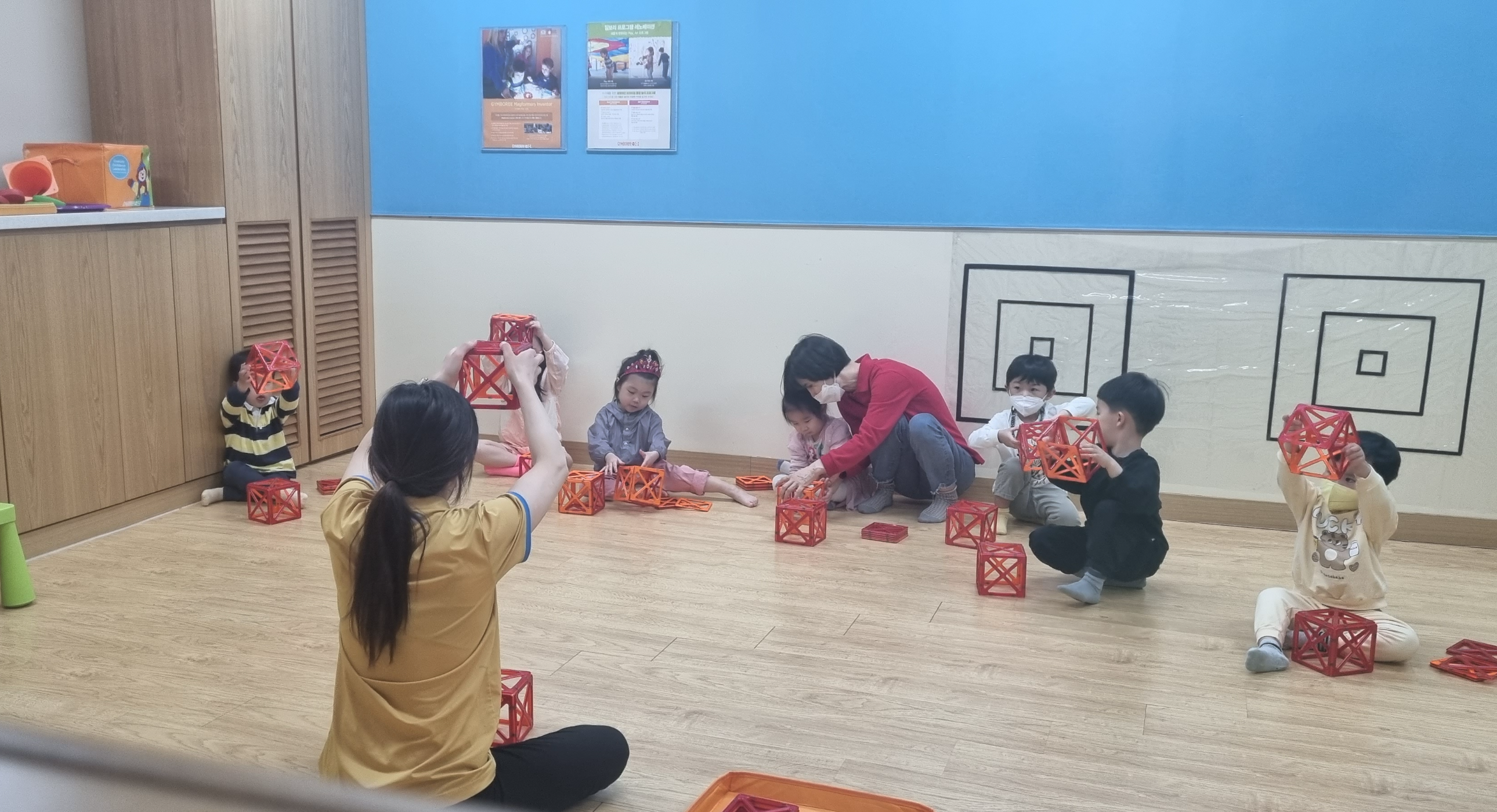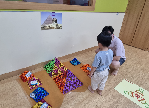 맥포머스 수업은 단순히 도형만 다루는게 아니라 이 나이대 아동들이 알아야할 기본 지식과 인지적인 부분도 함께 챙겨줍니다. 그래서 수업을 하면서 색분류, 모양 분류, 도형 이름, 숫자, 서수 등의 개념도 같이 배울 수 있었습니다.