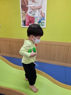 이렇게 기저귀를 차고 아장아장 걸어다닐때부터 러너 수업을 들으며 다양한 형태의 구조물을 오르내리고 동작을 따라하는 대근육 활동을 해보았고요.