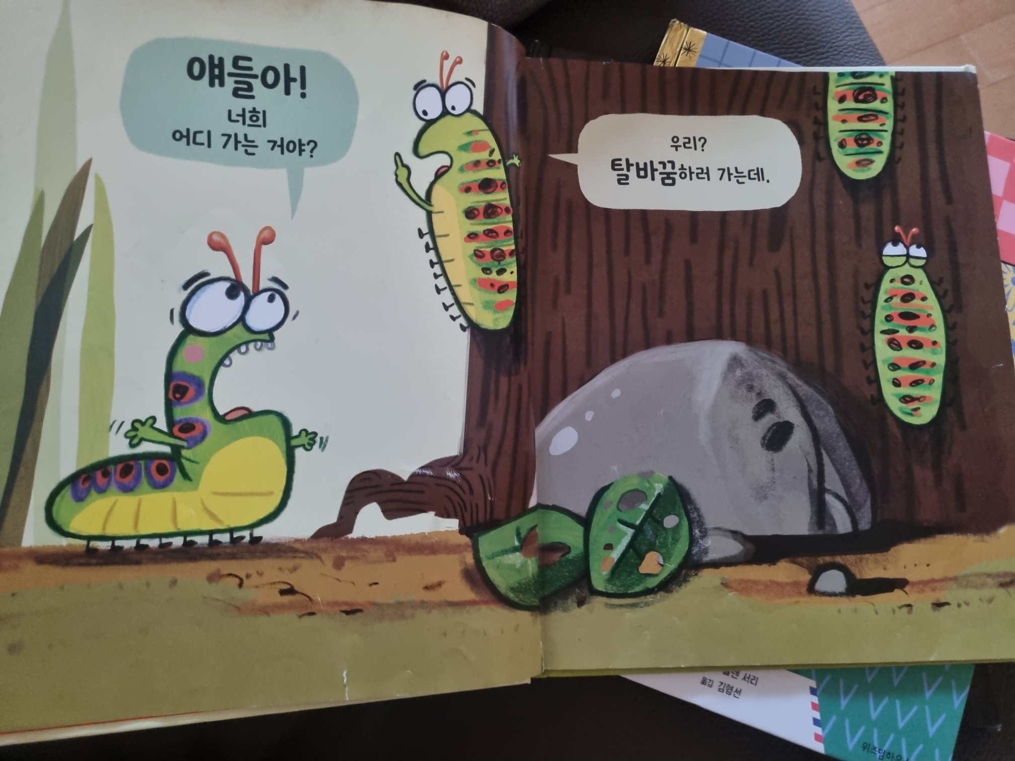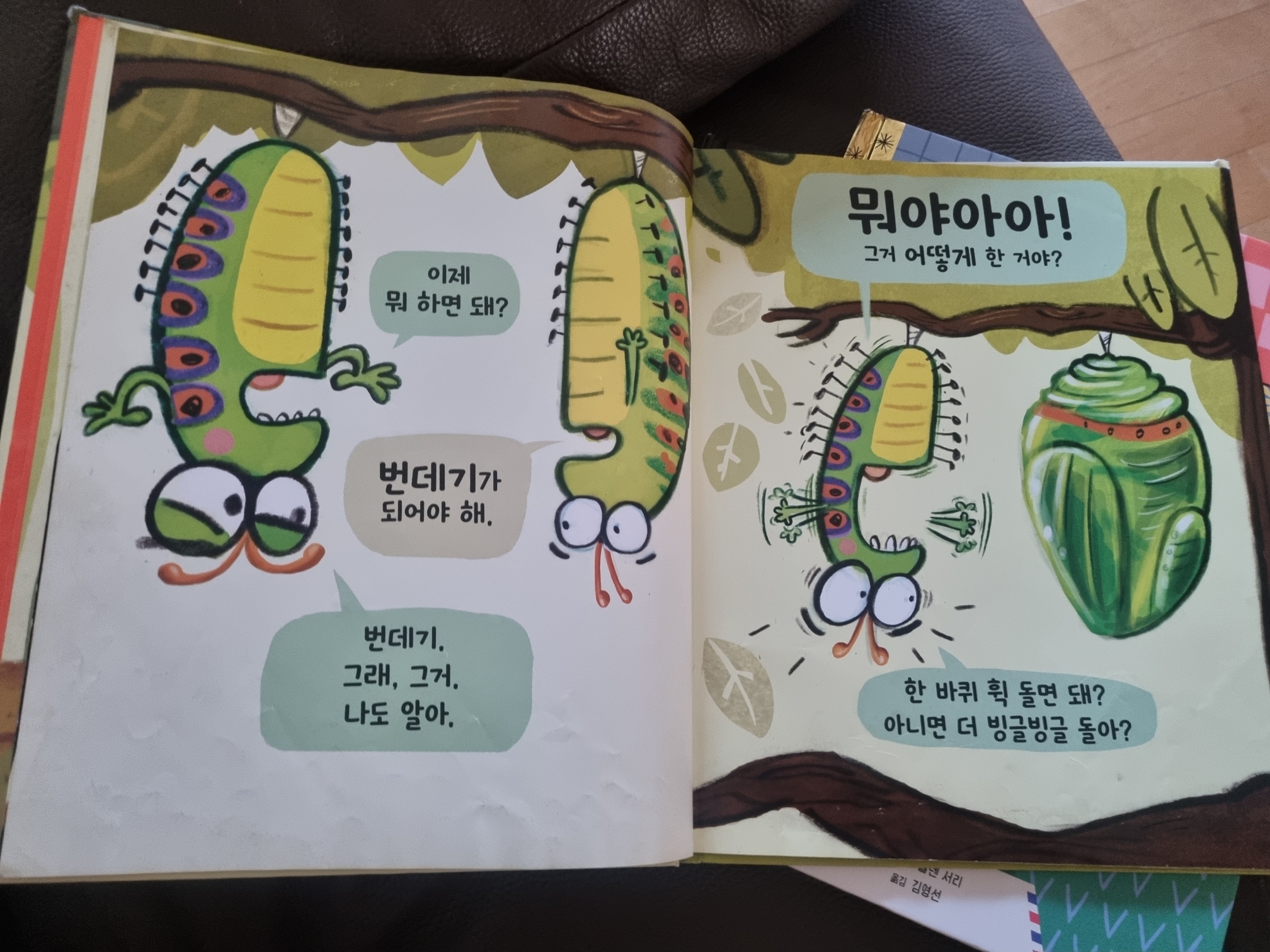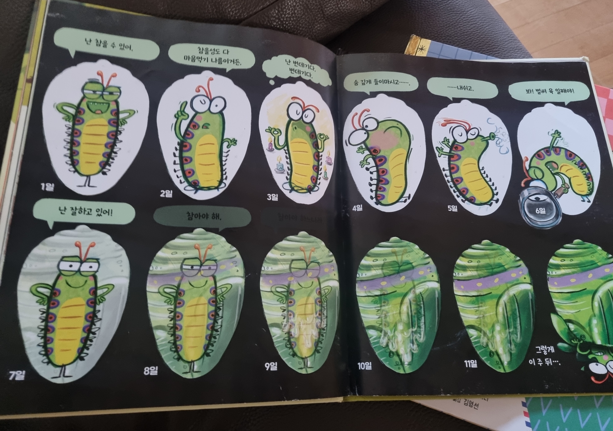 그림으로 이렇게 애벌레가 누에고치가 되어가는 모습을 구체적으로 보여줘서 유익했다.
